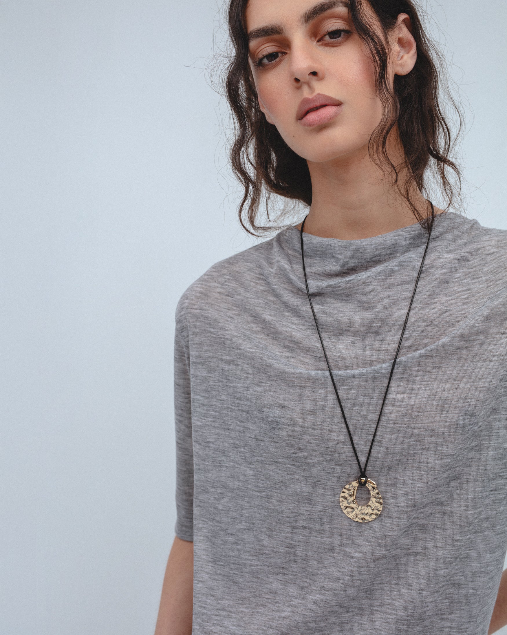 Camiseta de cuello amplio desbocado y manga corta. Detalle de pliegues en hombro que generan drapeado frontal. Confeccionada en tejido de punto ligero con mezcla de viscosa.