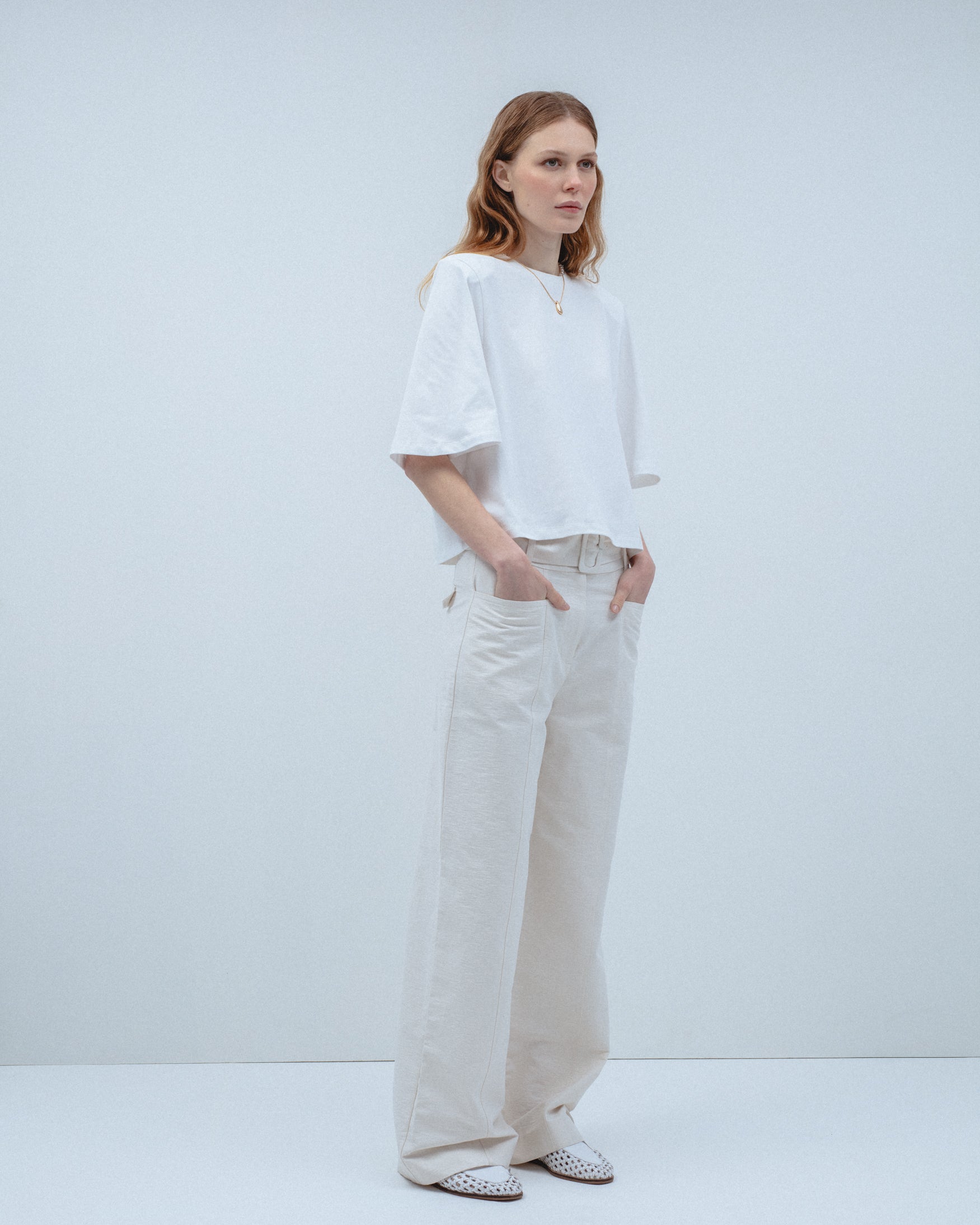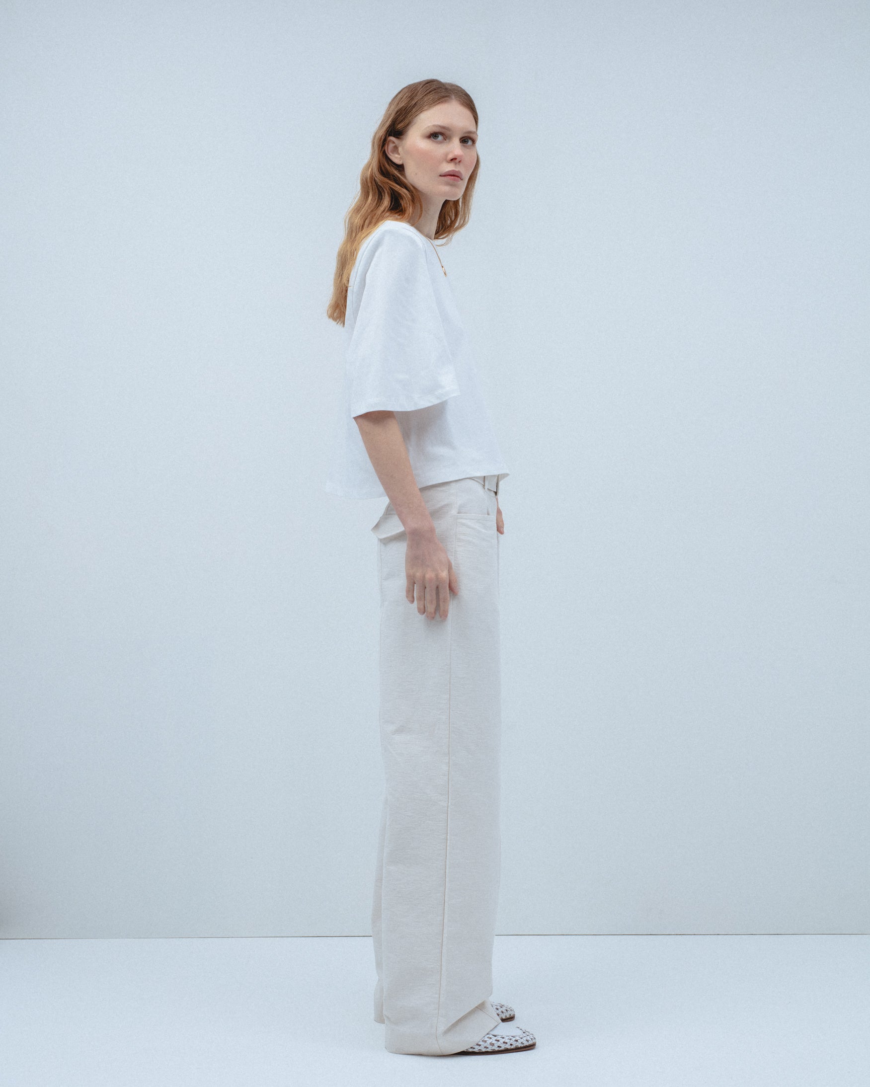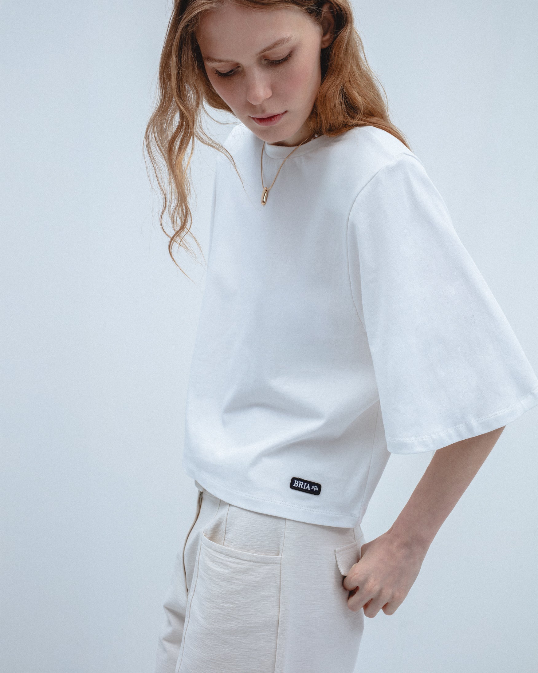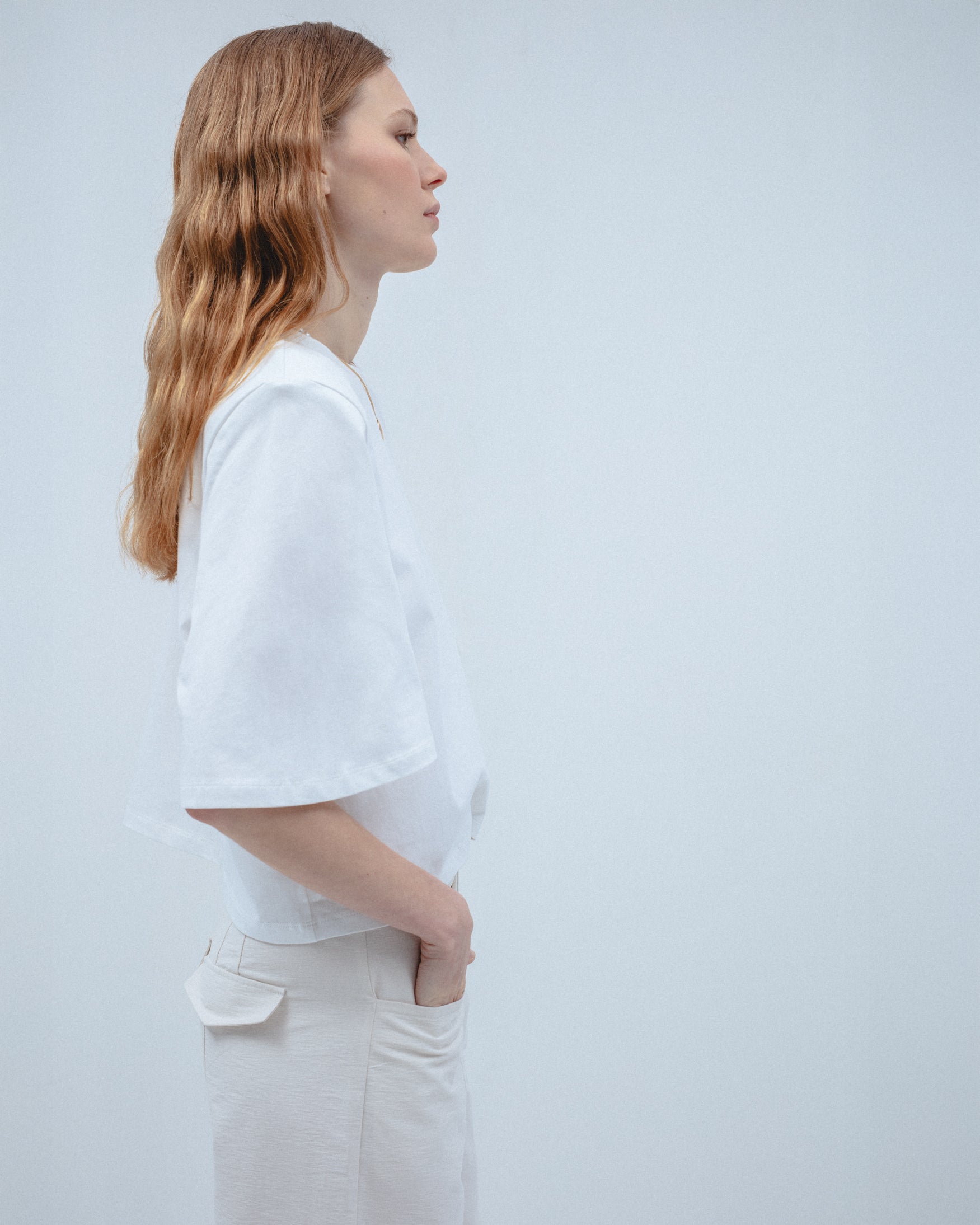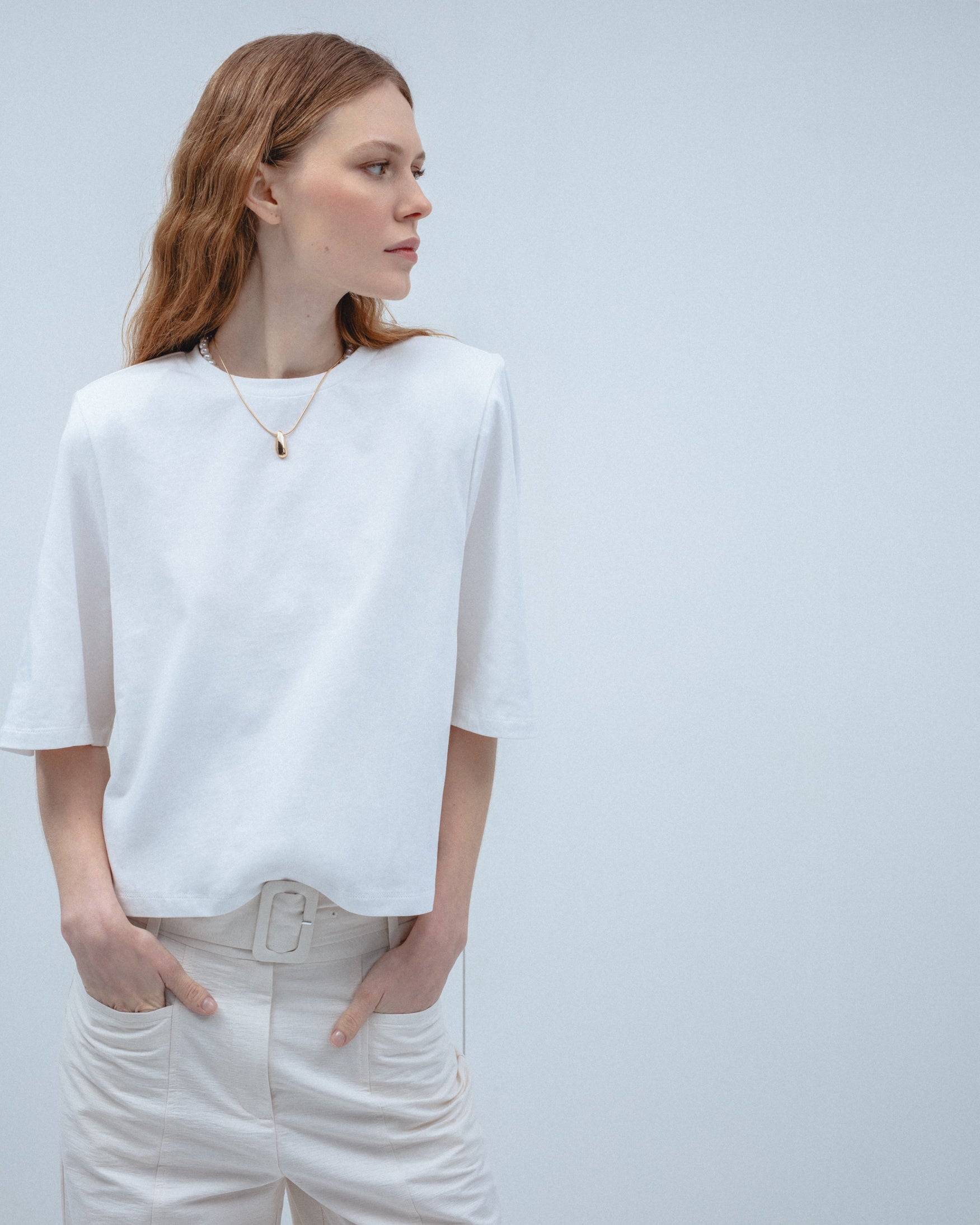 Camiseta de cuello redondo y manga corta. Detalle de hombreras interiores marcadas.