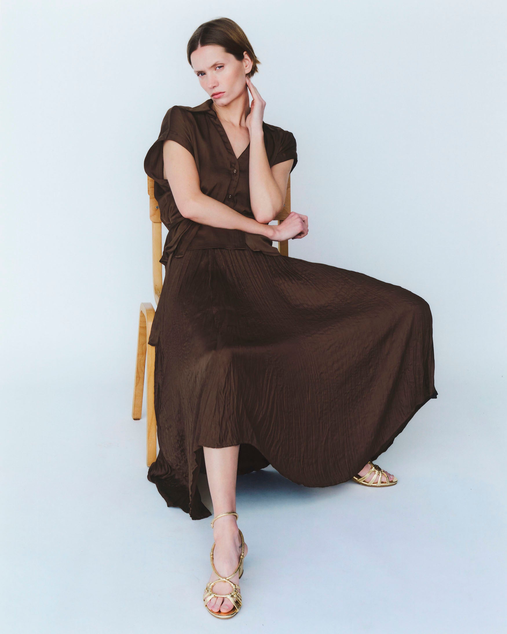 Falda Midi Saten Plisada Gomas