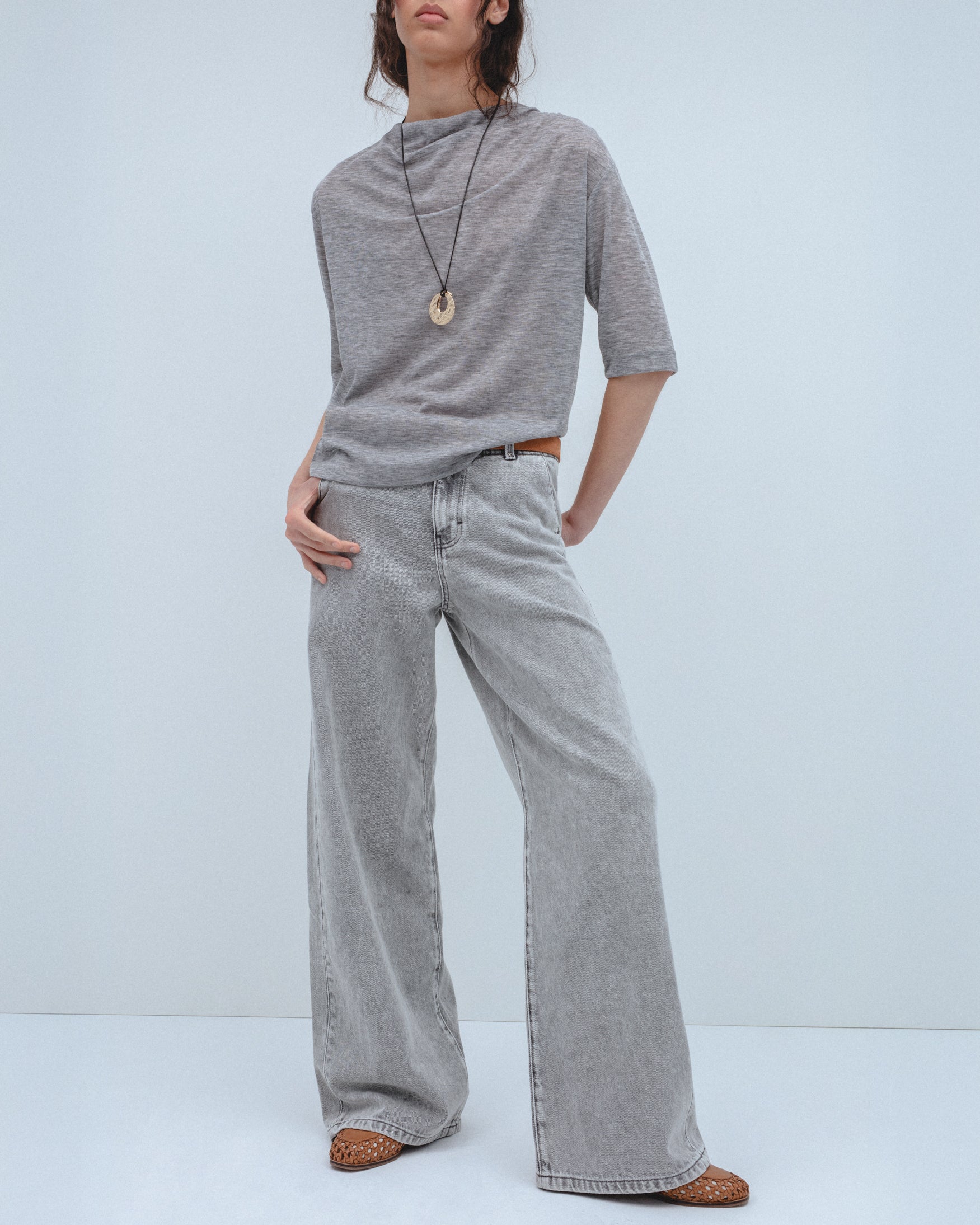 Jeans Wide Leg Efecto Lavado