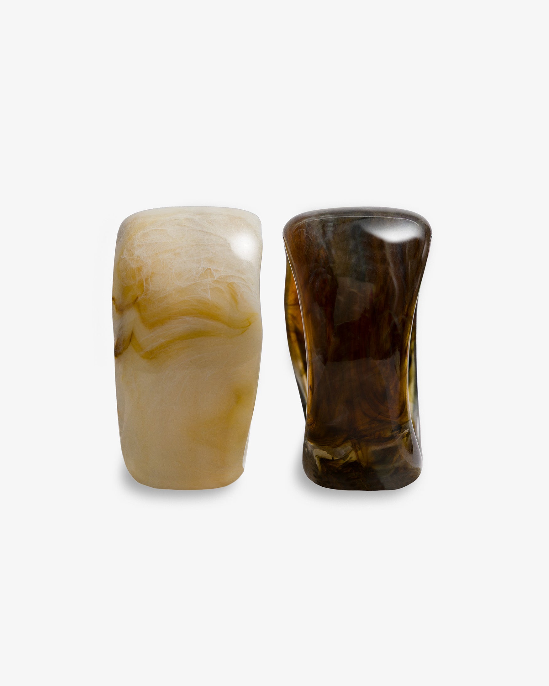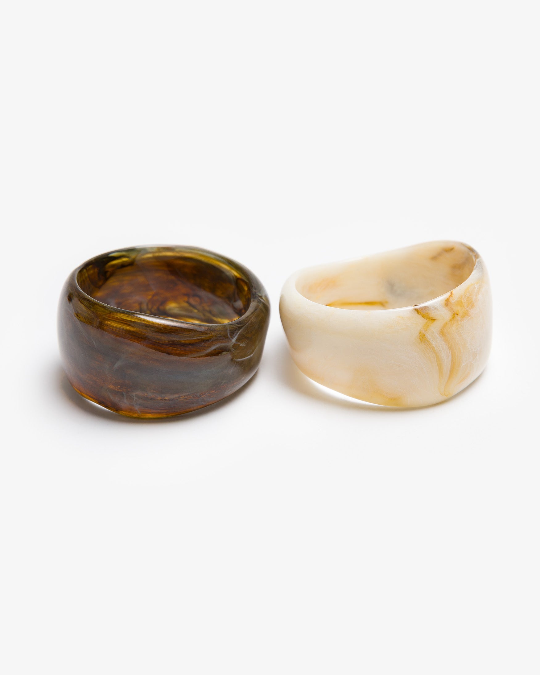 Pack de 2 pulseras de resina con diseño abultado de silueta irregular. Acabado efecto carey y mármol en tonos contrastados.