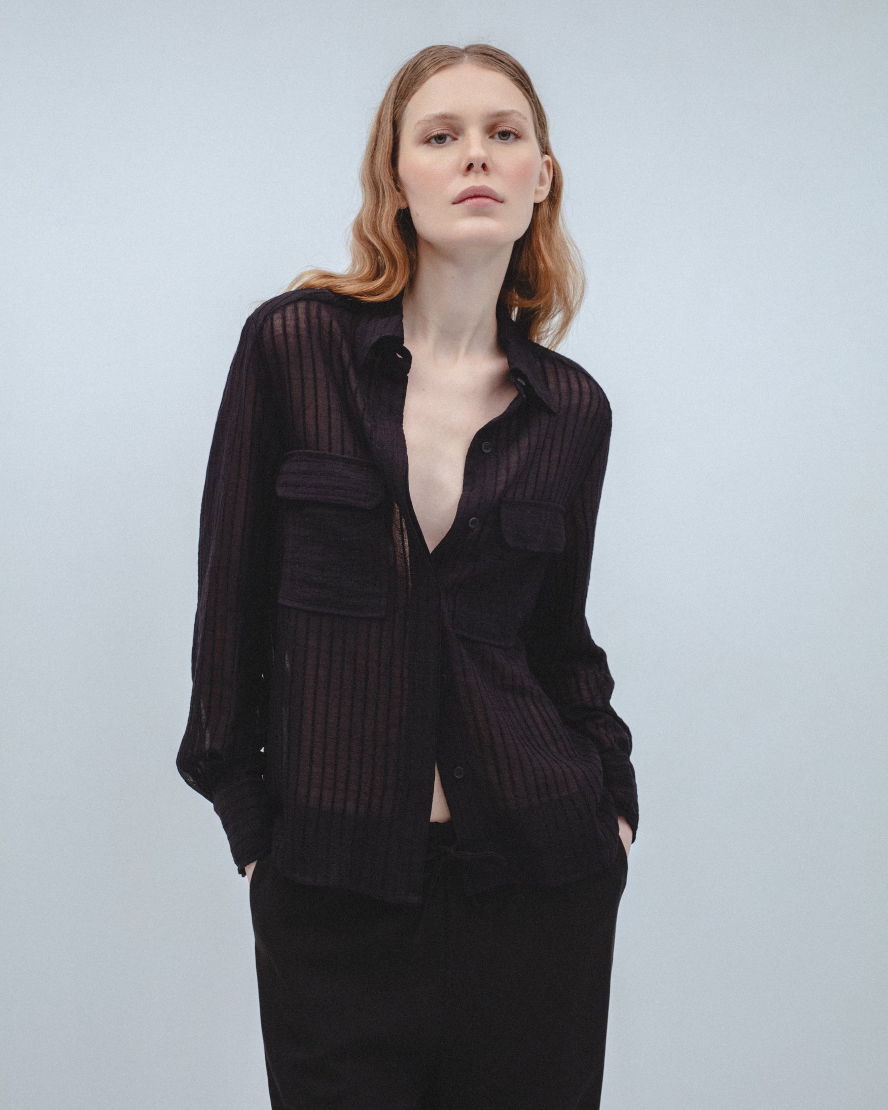 Pantalón de tiro alto con cintura elástica ajustable con cordones. Bolsillos laterales. Pernera ancha.