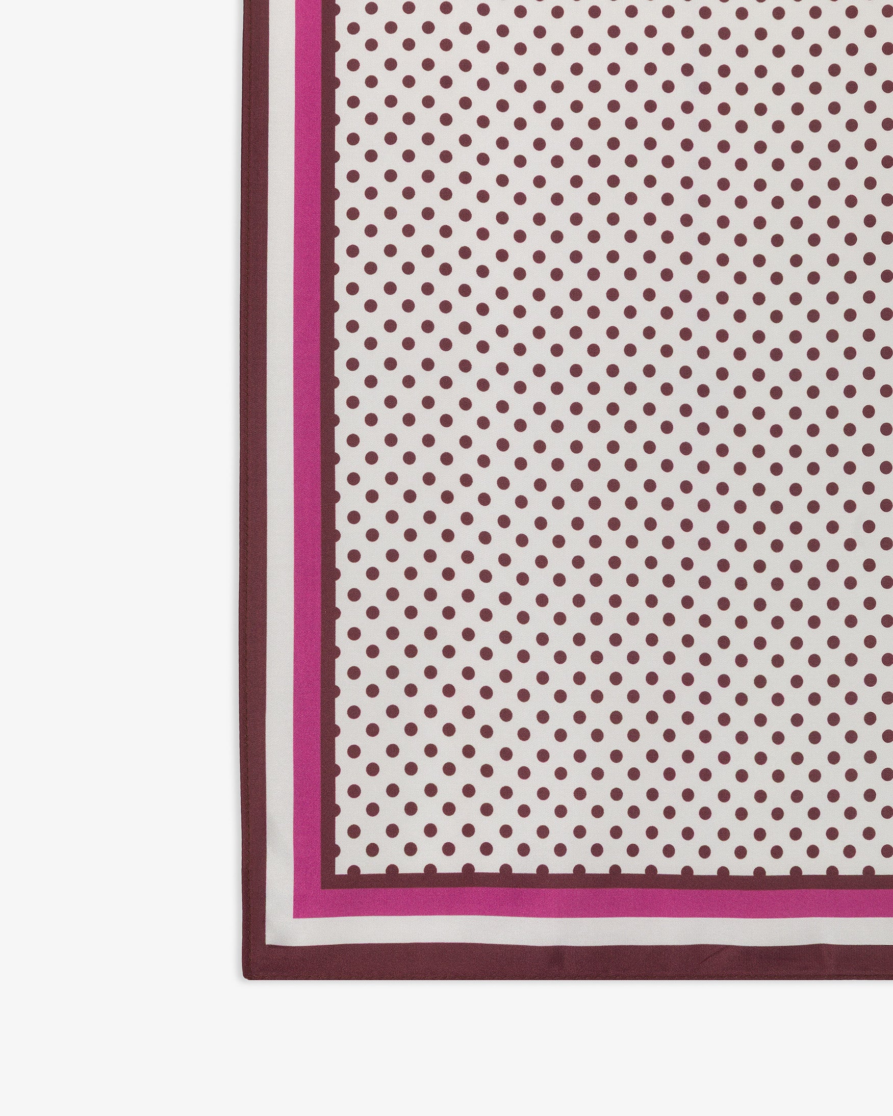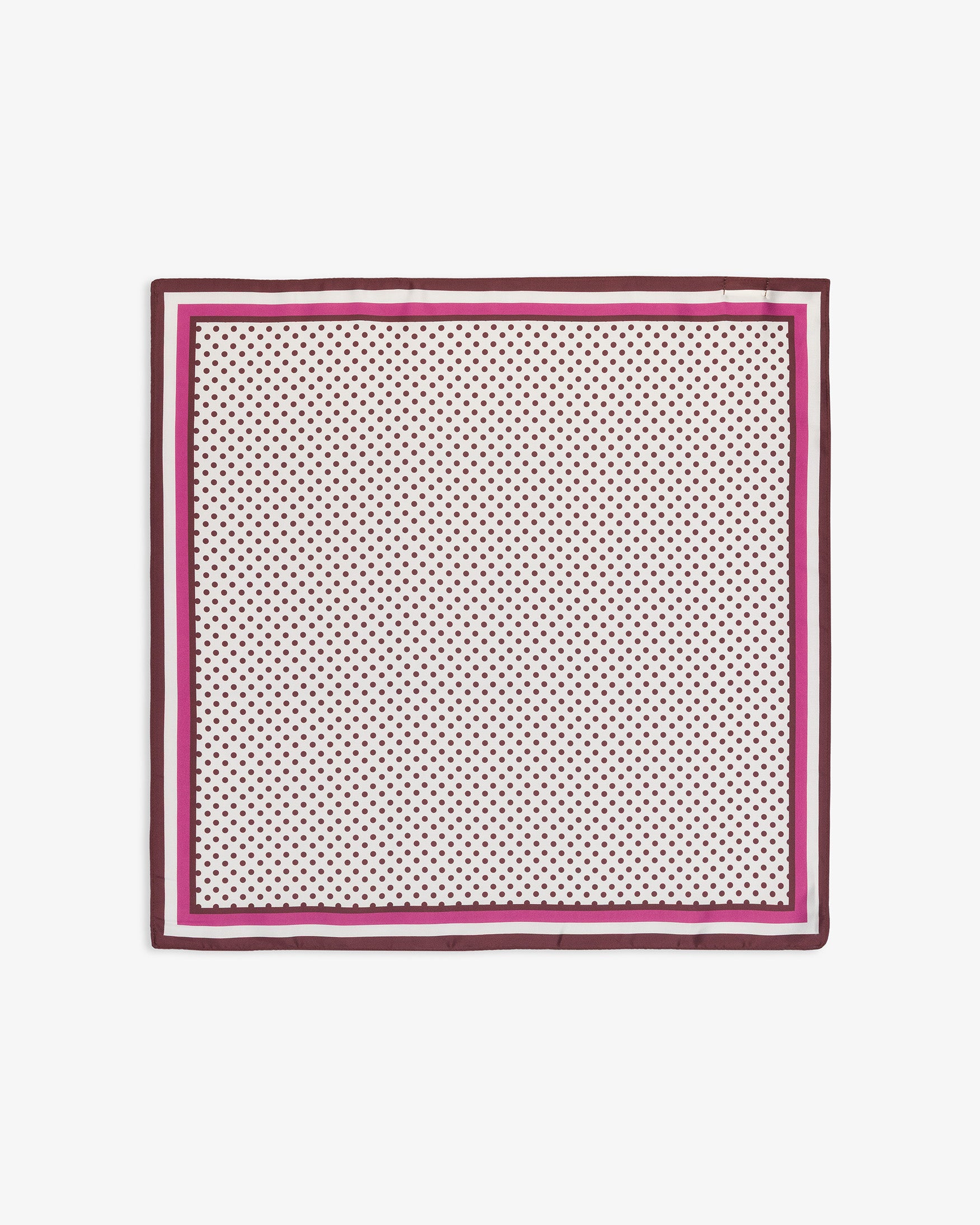 Pañuelo confeccionado en mezcla de tejido ligero. Diseño con estampado de pequeños lunares y detalle de marco con bandas de colores en contraste.