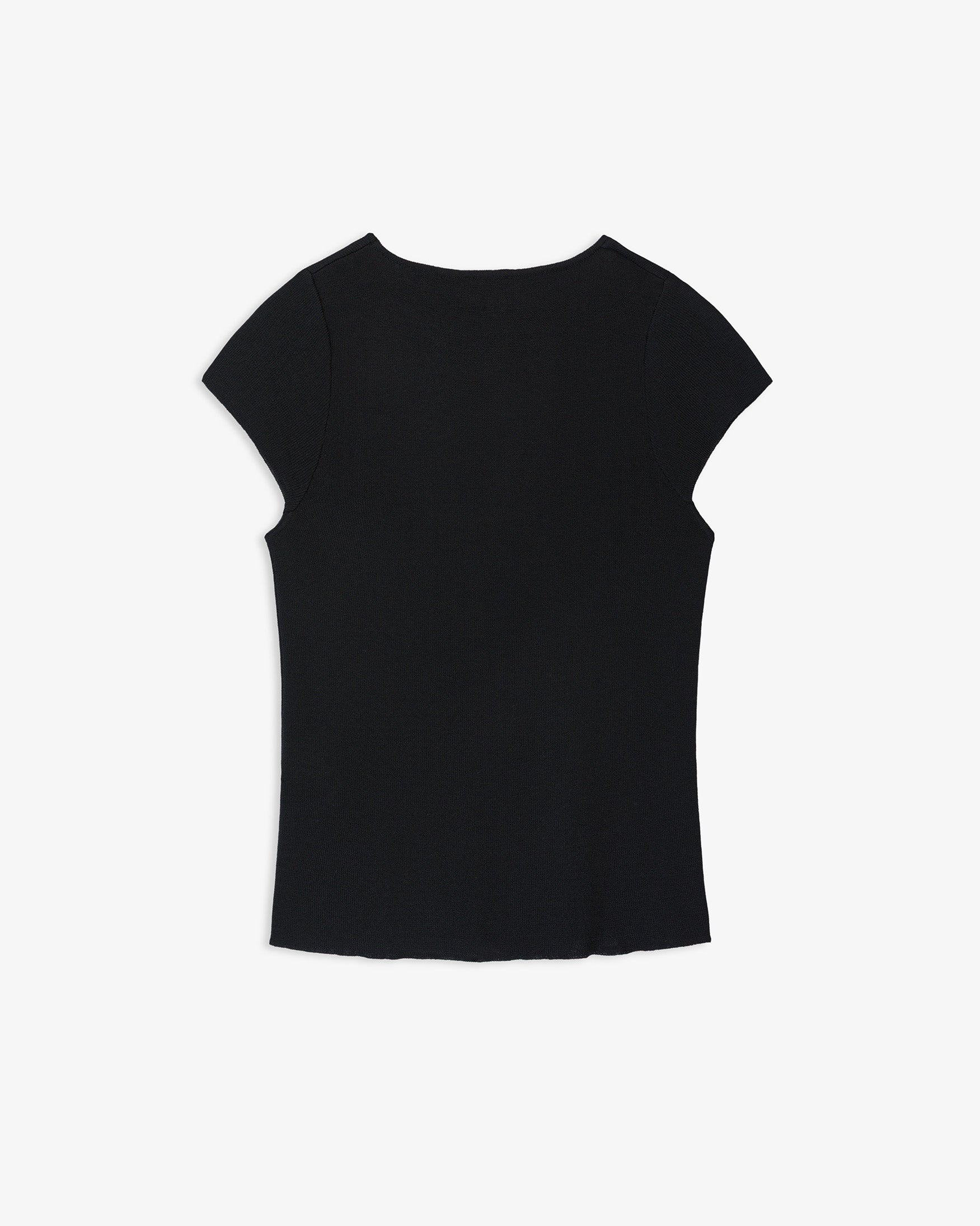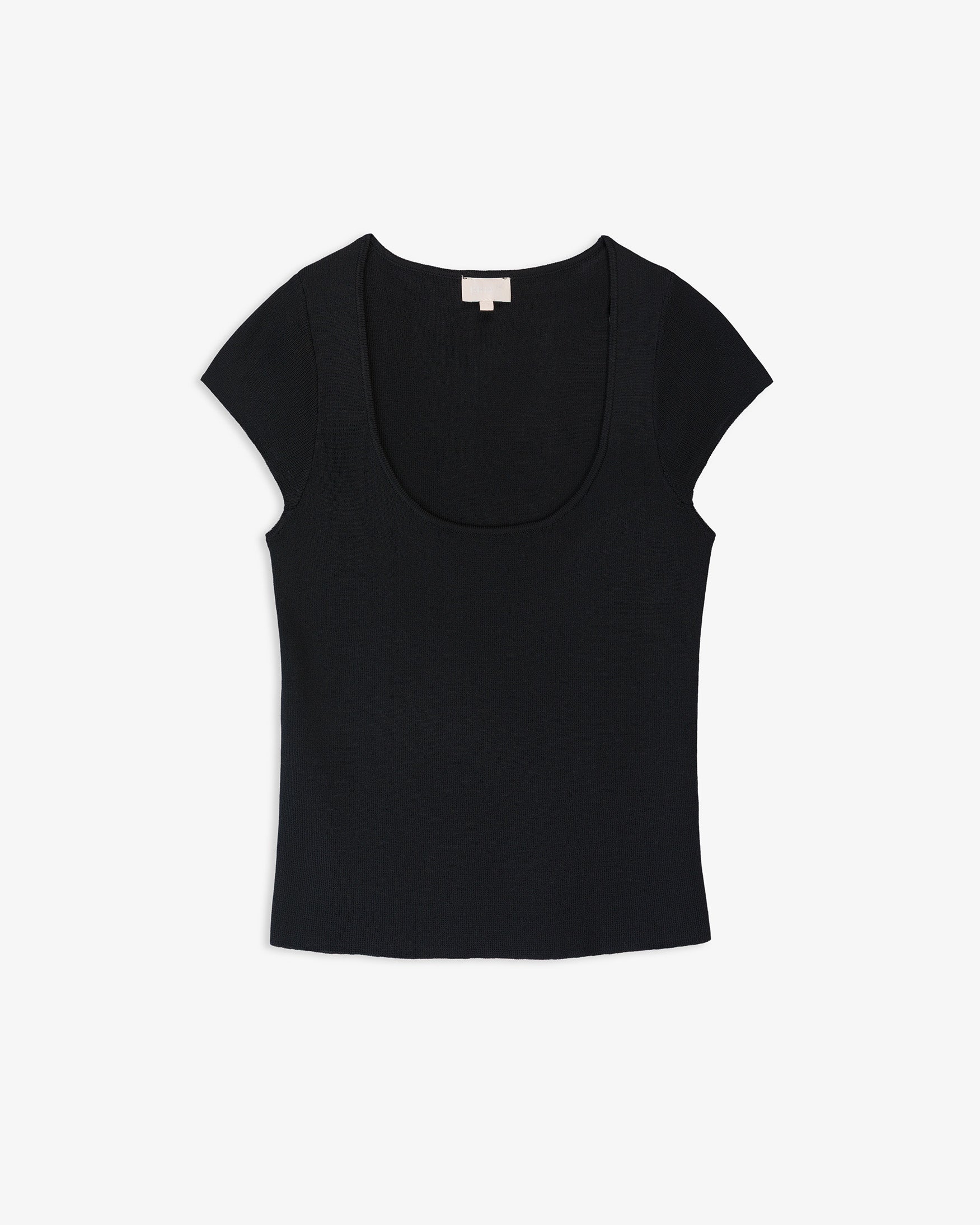 Top de cuello amplio redondo y manga corta tipo sisa. Detalle de acabados con ribete fino. Confeccionada en tejido de punto ligero de tacto suave.